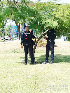 8.- Se alejan uno veinte metros, y permanecen un rato asediándome ilícitamente, de frente a mis espaldas y a la avenida, Patria, en la que pedía donaciones cuando ellos llegaron. Mientras tanto, uno de ellos se comunica por celular o simula hacerlo, y yo les tomo algunas fotos, como parte de las pruebas de estos hechos, para denunciarlos e identificarlos, y uno de ellos permanece casi todo el tiempo con la cara oculta tras parte de un árbol.